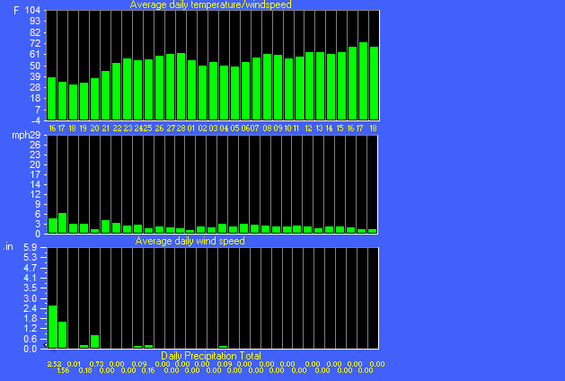Maximum windspeed = 10.4 mph from 214°( SW) on day 04 at time 13:38